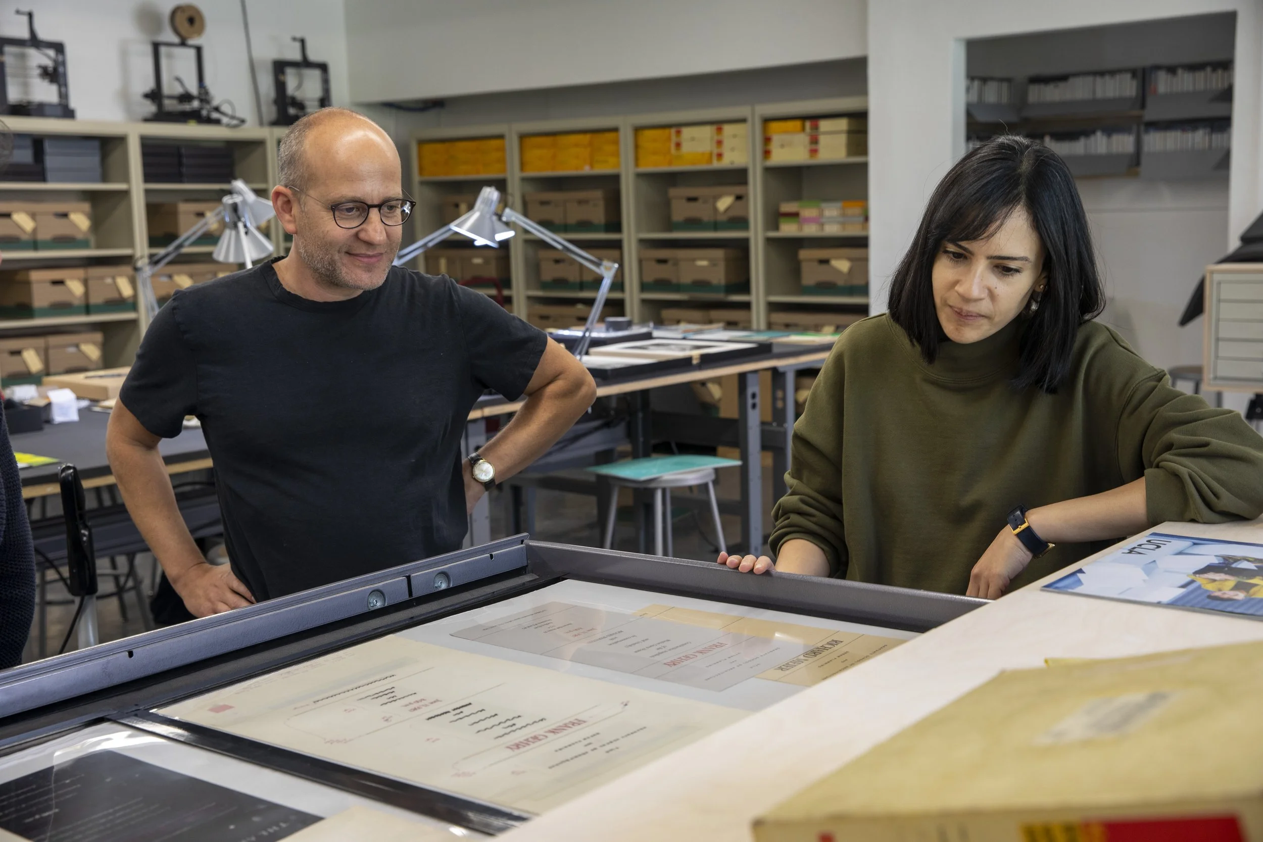 As a student here, you’ll learn in close-knit, hands-on environments where creativity thrives both inside and outside the classroom. You’ll collaborate with fellow students, graduate TAs, and staff, all of whom contribute to vibrant dialogues where ideas flourish and perspectives expand. Our distinguished faculty will challenge you to push boundaries, refine your creative practice, and envision new possibilities using both time-honored techniques and cutting-edge technologies.