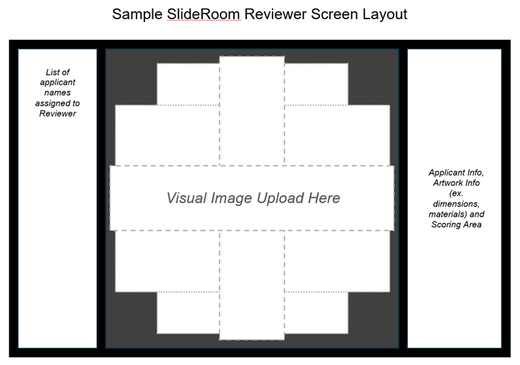 Here is an example of a SlideRoom review screen layout, so that you can visualize the way your uploads look on the evaluator end: